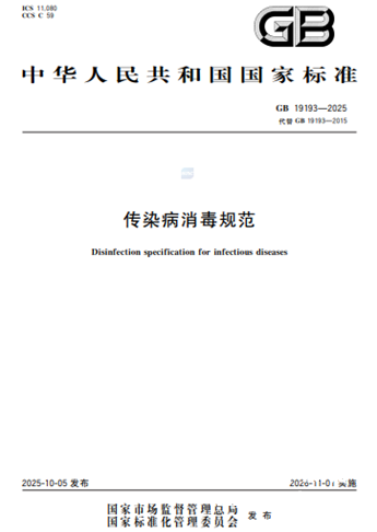 GB19193—2003,2015年第一次修订; ——本次为第二次修订。 GB19193—2025 传染病消毒规范 1 范围 本文件确立了传染病的消毒原则,规定了传染病的预防性消毒要求、随时消毒要求、终末消毒要求、消毒质量控制和消毒评价。 本文件适用于各类传染病的预防性消毒、随时消毒和终末消毒。 2 规范性引用文件 下列文件中的内容通过文中的规范性引用而构成本文件必不可少的条款。其中,注日期的引用文件,仅该日期对应的版本适用于本文件;不注日期的引用文件,其最新版本(包括所有的修改单)适用于本文件。 GB5749 生活饮用水卫生标准 GB18466 医疗机构水污染物排放标准 GB18918 城镇污水处理厂污染物排放标准 GB27953 疫源地消毒剂通用要求 WS/T797 现场消毒评价标准 3 术语和定义 下列术语和定义适用于本文件。 3.1传染病消毒 disinfectionofinfectiousdiseases 为预防和控制传染病,采取的以切断病原体传播途径为主的消毒措施。 注:包括预防性消毒、随时消毒和终末消毒。 3.2预防性消毒 preventivedisinfection 没有明确的传染源存在时,对可能受到病原微生物污染的环境和物体进行的消毒。 3.3随时消毒