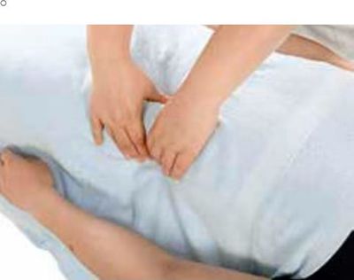 【要领】 1.指面和掌面要紧贴受术者体表。 2.操作时,肘关节有屈伸运动。 3.腕关节放松,指掌关节自然伸直,腕部运动先于掌指运动。 4.力量均匀,动作轻柔,富有节奏感。 (二)一指禅推腹部任脉 【方法】 术者坐于受术者右侧,以一指禅推法沿任脉循行部位,从鸠尾经中脘、神阙、气海,推至关元,自上而下单向或往返操作3~5遍(图6-94)。 【要领】 1.术者沉肩、垂肘、悬腕。 2.拇指吸定,力量不宜过大。 3.腕关节放松,动作轻柔有节奏。 4.紧推慢移。 (三)掌(指)按腹部 【方法】 术者坐(或站)于受术者右侧,以右掌(或示、中、环三指指腹)由下往上依次按压腹部关元、神阙、中脘等穴各3~5次(图6-95)。 【要领】 1.用力由轻到重,平稳而持续,忌突然用力。 2.术者应配合身体重心的前后移动。 3.操作时宜迎随受术者呼吸。 (四)掌揉腹部 【方法】术者坐(或站)于受术者右侧,以全掌吸定于腹部,做逆时针(或顺时针)揉动,并沿腹部做顺时针移动,持续3~5分钟(图6-96)。 【要领】 1.腕关节放松。 2.逆时针揉动和顺时针移动,形成螺旋形的运动轨迹。 3.可在中脘、神阙、气海、关元等穴处做吸定操作。 4.要带动皮下组织运动。 5.揉动动作均匀、持续、协调而有节奏,以透热为佳。 (五)拿腹部两侧 【方法】 术者站于受术者右侧,双手虎口相对,同置于腹部一侧,做轻重交替而连续的一紧一松的捏提和捏揉动作,可上下往返小幅移动(图6-97)。同法 图6-94 一指禅推腹部任脉 图6-95 掌(指)按腹部 图6-96 掌揉腹部 图6-97 拿腹部两侧操作对侧。 |