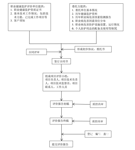 F.1 总论 F.1.1 项目背景 包括用人单位的基本情况和职业健康监护评价项目的任务由来等内容。 F.1.2 评价依据 F.1.2.1 引用的法律、法规名称。 F.1.2.2 引用的技术规范、标准名称。 F.1.2.3 引用的职业健康检查、工作场所职业病危害因素检测报告等基础技术资料名称。 F.1.3 评价目的 F.1.3.1 评价劳动者职业健康损害与工作场所接触职业病危害因素的关联及关联程度。 F.1.3.2 识别新的职业病危害因素和高危人群。 F.1.3.3 为用人单位职业卫生管理提供依据。 F.1.4 评价范围 主要针对劳动者接触职业病危害因素后导致的健康损害进行分析与评价。 F.1.5 评价方法 根据工作场所职业病危害因素特点,一般采用职业流行病学调查法、经验法、风险评估法和统计学分析等方法进行综合分析与评价。可通过收集历年职业健康检查、工作场所职业病危害因素检测报告和其他相关资料,结合职业病危害防护设施、个人职业病防护水平等的现场调查结果,重点分析与评价劳动者健康损害与职业病危害因素接触水平之间的关联性和相关程度,并提出干预措施建议。 F.1.6 质量控制 用文字结合框图的方式,简述评价全过程的质量控制措施。参考图F.1。 图 F.1 职业健康监护评价报告流程及质量控制措施