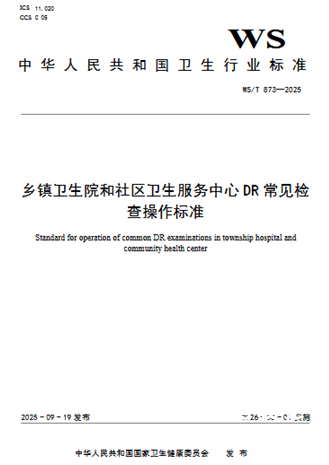 ——关于发布《基层医疗卫生机构高血压防治管理标准》等3项推荐性卫生行业标准的通告(国卫通〔2025〕13号) 第2项 前言 本标准为推荐性标准。 本标准由国家卫生健康标准委员会基层卫生健康标准专业委员会负责技术审查和技术咨询,由国家卫生健康委医疗管理服务指导中心负责协调性和格式审查,由国家卫生健康委基层卫生健康司负责业务管理、法规司负责统筹管理。 本标准起草单位:首都医科大学附属北京友谊医院、四川大学华西医院、山东第一医科大学附属省立医院、首都医科大学附属北京潞河医院、北京大学人民医院、中国中医科学院广安门医院、中国医学科学院北京协和医院、山东省肥城市新城街道社区卫生服务中心。 本标准主要起草人:牛延涛、王振常、杨正汉、李真林、马新武、李广民、綦维维、石凤祥、王沄、牛聪颖。 WS/T 873—2025 乡镇卫生院和社区卫生服务中心 DR 常见检查操作标准 1 范围 本标准规定了乡镇卫生院和社区卫生服务中心开展数字X射线摄影(DR)检查的一般要求、检查前准备、检查流程和DR常见检查项目的诊断学要求、体位设计和成像技术要求。 本标准适用于乡镇卫生院和社区卫生服务中心等基层医疗卫生机构开展DR常见检查项目,本标准中的DR常见检查技术为影像检查操作的通用要求,其他机构可参照执行。开展计算机X射线摄影(CR)检查的机构可参照本标准执行。 2 规范性引用文件 下列文件中的内容通过文中的规范性引用而构成本标准必不可少的条款。其中,注日期的引用文件,仅该日期对应的版本适用于本标准;不注日期的引用文件,其最新版本(包括所有的修改单)适用于本标准。 GBZ 130 放射诊断放射防护要求 WS 76 医用X射线诊断设备质量控制检测规范 WS/T 389 医学X线检查操作规程 3 术语和定义 下列术语和定义适用于本标准。 3.1