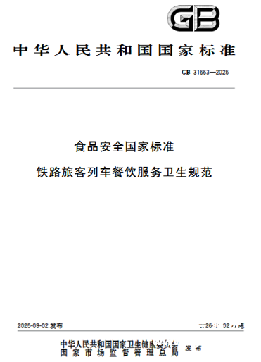 ——国家卫生健康委员会 国家市场监督管理总局关于发布《食品安全国家标准 食品中污染物限量》(GB 2762-2025)等32项食品安全国家标准和2项修改单的公告(2025年 第6号) 第15项 GB31663—2025 食品安全国家标准 铁路旅客列车餐饮服务卫生规范