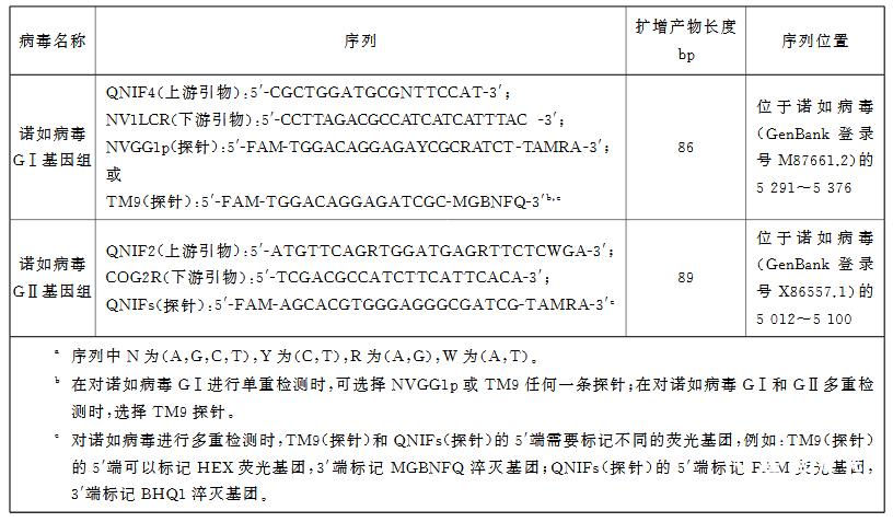 表 A.1 GI和 GI基因组诺如病毒实时荧光 RT-PCR 引物和探针a