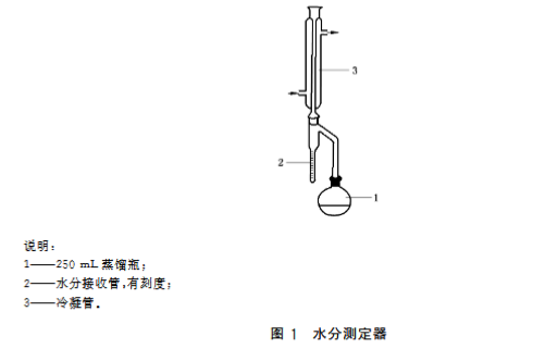 15 仪器和设备 15.1水分测定器:如图1所示(带可调电热套)。水分接收管容量5mL,最小刻度值0.1