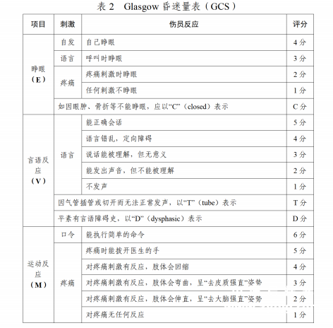 Scale,GCS;见表2)对创伤严重程度进行初步评估。 表1 TI评分量表