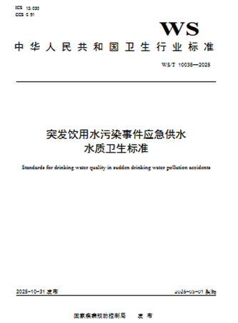 WS/T 10038—2025 突发饮用水污染事件应急供水水质卫生标准