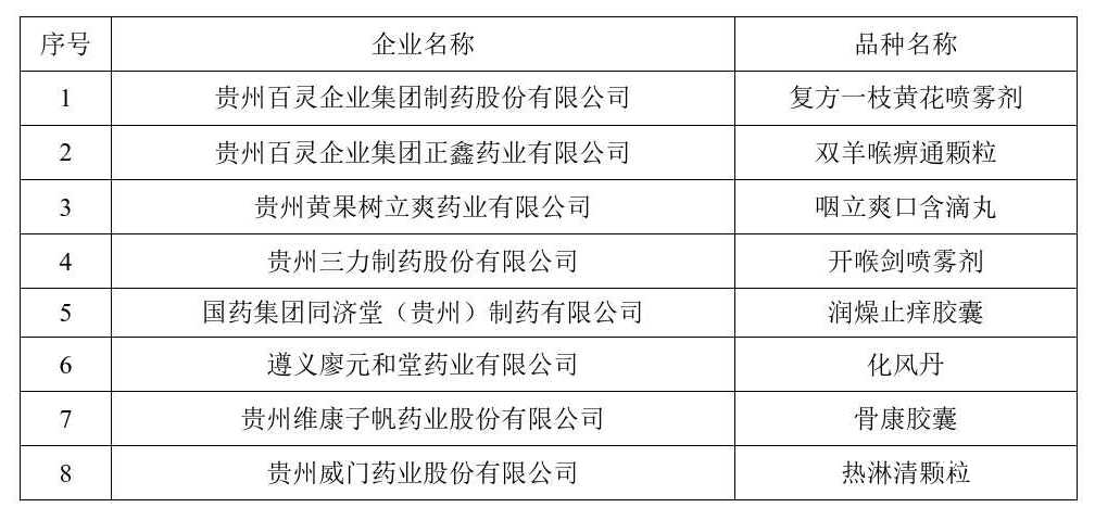 根据《贵州省名优中成药大品种二次开发及科技攻关拔尖人才培养工程方案》要求,经各企业申报,省中医药管理局组织专家评审并研究确定,贵州百灵企业集团制药股份有限公司的复方一枝黄花喷雾剂等8个品种入选贵州省名优中成药大品种二次开发工程。现将入选品种名单进行公示。